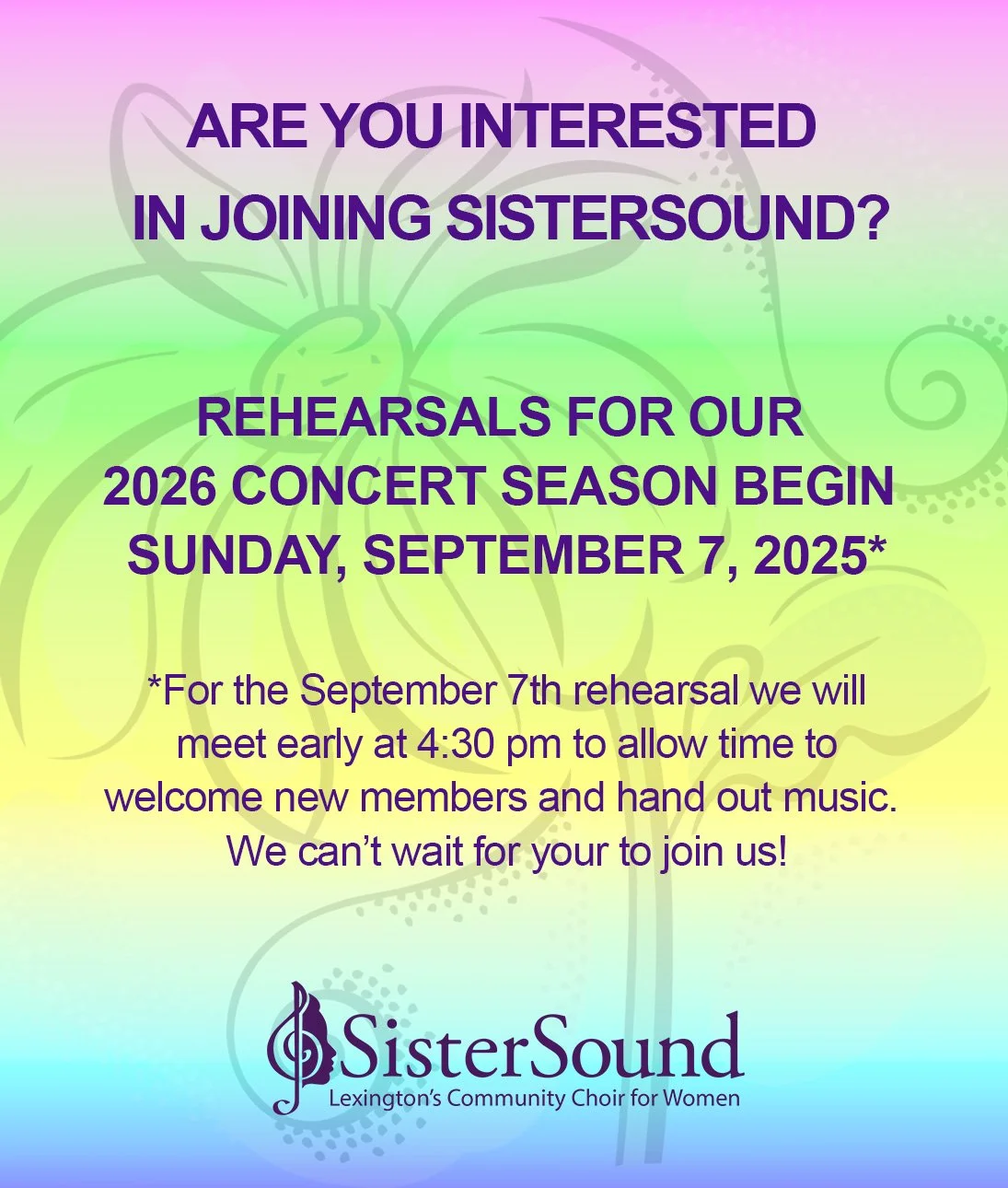 Welcome to SistersoundLexington's Community Choir for Women concerts More Info JOIN US MORE INFO About sistersound About Us